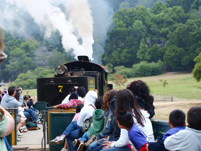 まずはRoaring Camp Railroadsの蒸気機関車に乗車。