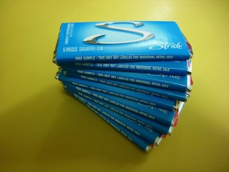 学校の近くを歩いていると、何かの屋台の準備をしている人々がいました。そのうちの一人のおネエさんが手招きするので行ってみると、ガムの試供品を渡されました(右の写真)。