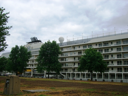 よく見ると、これは建物ではなく、巨大な客船でした。。。